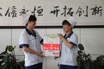 圖1為恒新公司團(tuán)委邀請(qǐng)常山股份第七屆杰出青年董麗瑞為今年第二季度“星”青年楊翠霞頒獎(jiǎng)。